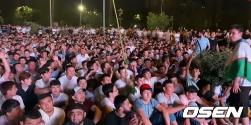 試合がウズベキスタンの勝利で終わると、一部のファンは選手たちが乗るバスの通用出口に集まった。ウズベキスタンの選手たちを乗せたバスがそこを通り抜けると、大歓声を上げた。